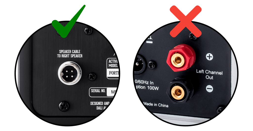 Consejo rápido: Puedes identificar fácilmente los altavoces “activos” con crossover pasivo por los clásicos bornes de tornillo en la parte trasera (los mismos de los altavoces pasivos). ¡Tenlo en cuenta cuando elijas tus próximos altavoces activos!